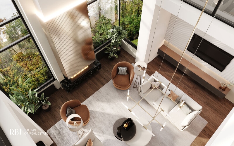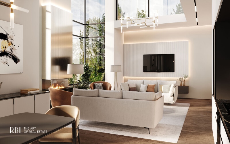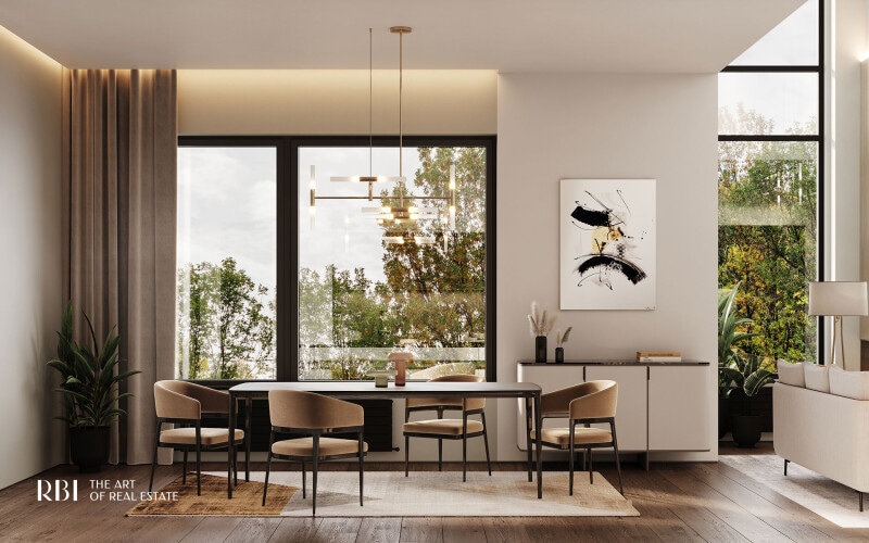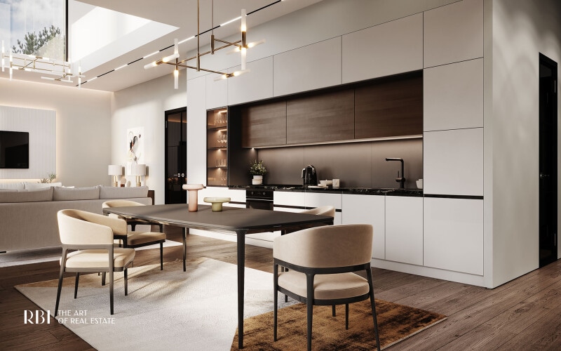 Комнаты просторные, в главной спальне – отдельные гардеробные и душевые. Всё пространство разделено на дополнительные функциональные зоны: в одной можно отдыхать семьей или с друзьями, в другой — работать.
