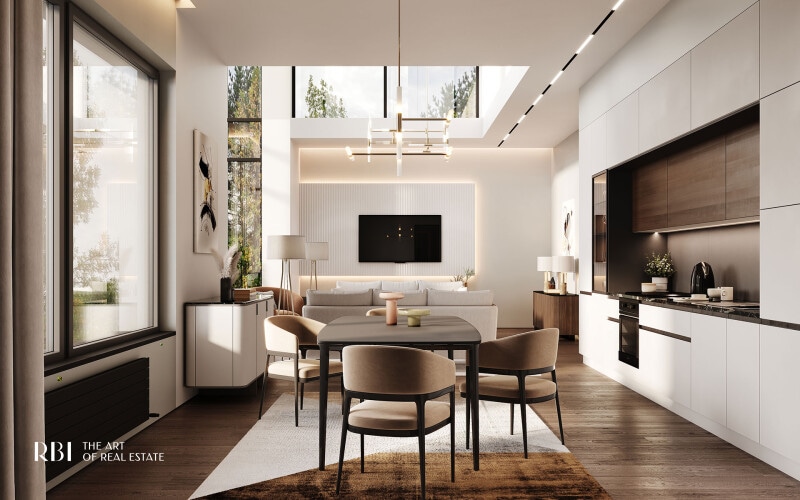 В комплексе 4 корпуса, в каждом – 21 номер, площадью от 46 до 151 м². Высота потолков до 3,3 метров, а в номерах с двусветной кухней-гостиной высота в зоне второго света достигает 6,3 и 6,6 метров.
